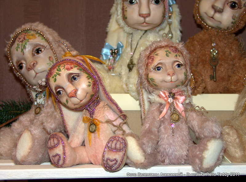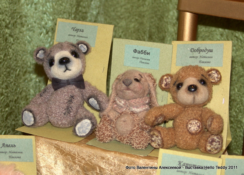 ОтветитьУдалитьЛеночка, твои мишки это что-то!! Потискала, разглядывала долго, они такие все крошечные, разные, столько деталек, в живую это так здорово!! И ведь никто пройти мимо не может, что бы не обратить на них внимание!! Обязательно принимай участие в выставке!!!
